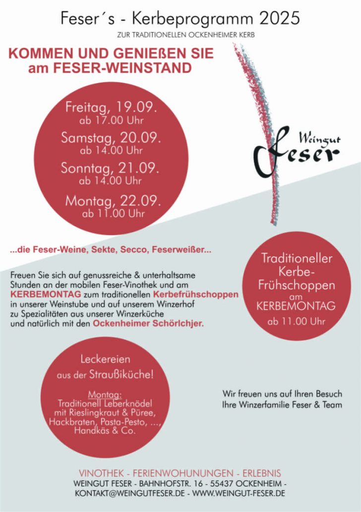Erleben auch Sie ehrliche, authentische, handwerklich wertvolle Weine aus dem Feserschen Weinkeller. Denn nur Weine, die wir selbst besonders gerne trinken, füllen wir in Flaschen. Gerne möchten wir u.a. so der Bevölkerung zeigen, dass Rheinhessen gute Wein produzieren kann und das „alte Denken“ bei der heutigen Winzergeneration nicht mehr vorhanden ist. Klasse statt Masse.